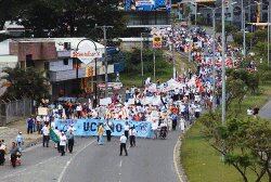 El Sindicato de Empleados de la UCR (Sindeu) fue uno de los que encabezó la marcha a la Casa Presidencial, en Zapote. | MARVIN CARAVACA