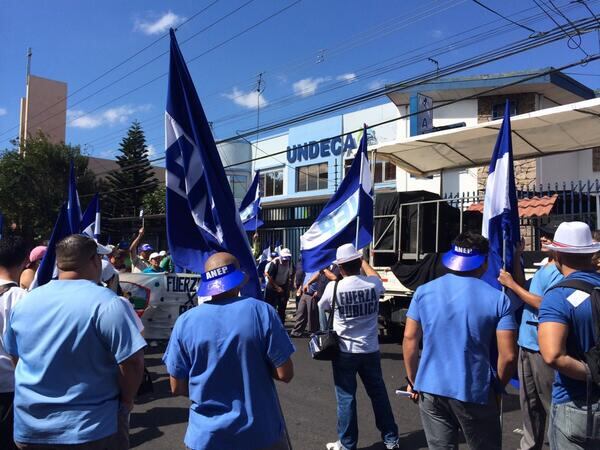 También, otro grupo de sindicalistas bloquea la calle frente a las instalaciones de la Asociación Nacional de Empleados Públicos y Privados (ANEP), en San José.