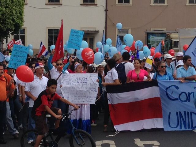 Desde las 8 a. m., empleados de los hospitales, clínicas y Ebáis de la Caja Costarricense de Seguro Social, profesores y maestros del Ministerio de Educación Pública y trabajadores de los muelles de Limón marchan a lo largo de todo el país contra lo que llaman políticas neoliberales del Gobierno.