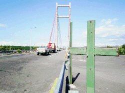 Solo esto queda de las señales que informan a conductores sobre la velocidad recomendada para ingresar al puente La Amistad. | OLIVER PÉREZ PARA LN (Oliver Perez)
