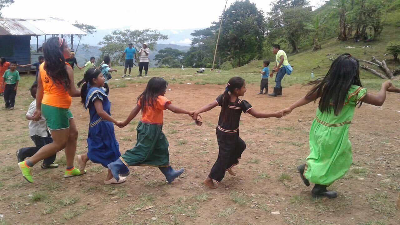 Indígenas de todas las edades son incluidos en el torneo. Mientras sus mamás juegan fútbol en la plaza de al lado, en Copey de Coto Brus, sus hijos juegan y realizan otras actividades de aprendizaje. Esto se realiza en los cinco territorios indígenas de Coto Brus durante este mes de mayo. Las actividades finalizan el domingo 21. (Roy Arias para GN)