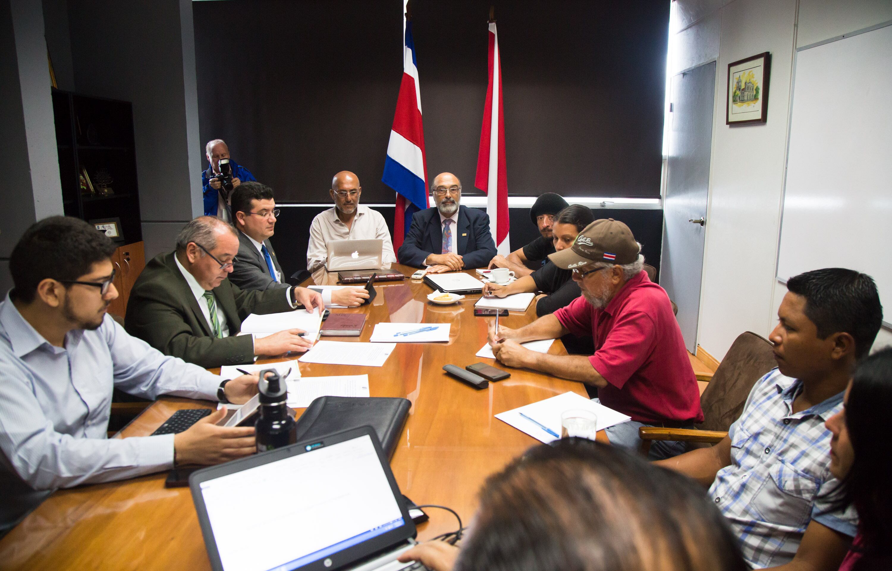 Este martes representantes de las familias desalojadas se reunieron en la Rectoría de la UNA con el grupo negociador del Gobierno encabezado por Sergio Alfaro, ministro de la Presidencia, para acercar posiciones que permitan lograr el acuerdo.