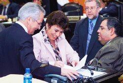 Luis Ramírez (izq.-PLN) y Federico Vargas (PUSC) respaldan el plan de reforma fiscal. Con ellos, Marta Zamora, de Acción Ciudadana.