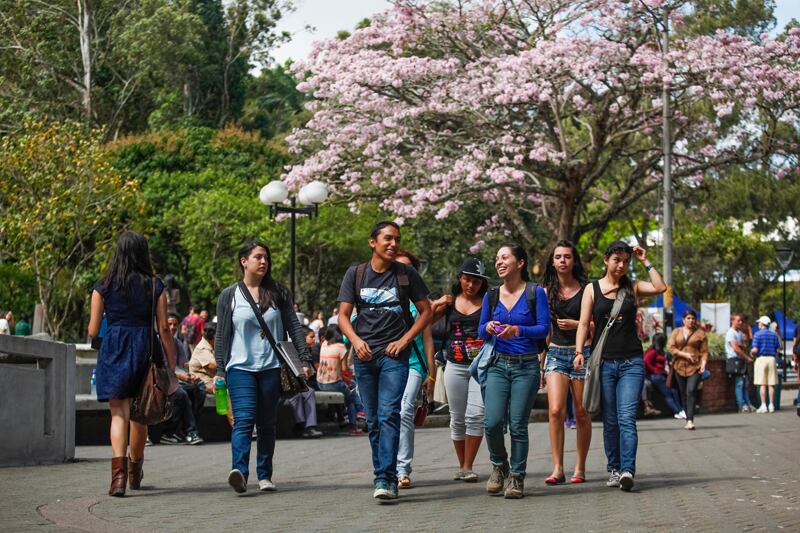 Más de 37.000 estudiantes de la Universidad de Costa Rica (UCR) regresaron a las aulas ayer, tras un receso de vacaciones de casi tres meses. Kevin Siles (camiseta negra) y Cinthya Vega (blusa azul), de la carrera de Terapia Física, son dos de los 7.894 estudiantes de primer ingreso que recorrieron por primera vez los pasillos y el pretil de la casa de enseñanza, de acuerdo con los datos de la Oficina de Registro e Información. Como parte de la semana de bienvenida, la UCR tendrá actividades culturales, recreativas y académicas, incluyendo la clase inaugural, en manos del economista argentino, Bernardo Kliksberg, el jueves a las 9 a. m. en la Escuela de Estudio Generales, en la sede Rodrigo Facio, en San Pedro, Montes de Oca.