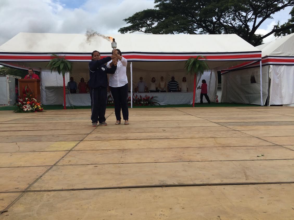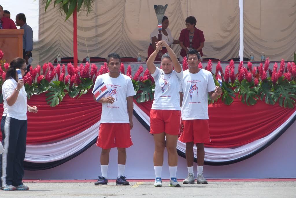 Traña, de 25 años, recibió en el puesto fronterizo de Peñas Blancas la Antorcha de manos de la ministra de Educación, Sonia Marta Mora, quien a su vez la tomó de las manos su homóloga de Nicaragua, Miriam Ráudez.