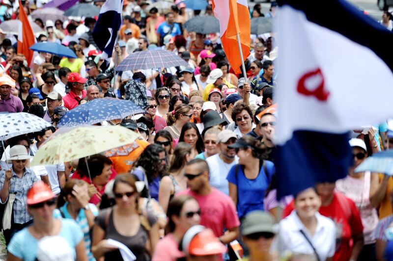 Durante buena parte de la mañana de ayer, cientos de docentes bloquearon las vías en los alrededores de la rotonda de las Garantías Sociales, en Zapote. Un grupo marchó hacia Casa Presidencial como parte de las protestas, debido a los fallos con el pago de salarios a educadores. | MARCELA BERTOZZI (Marcela_Bertozzi)