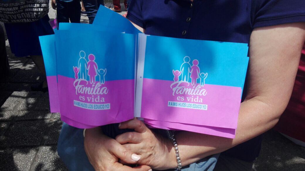 Bajo el lema "a mis hijos los educo yo", un grupo de manifestantes se congregó la mañana de este sábado en la plaza de la Democracia, en San José, para protestar contra la nueva asignatura de Educación para la Sexualidad, que el Ministerio de Educación Pública (MEP) impartirá a los alumnos de décimo año a partir del 2018.