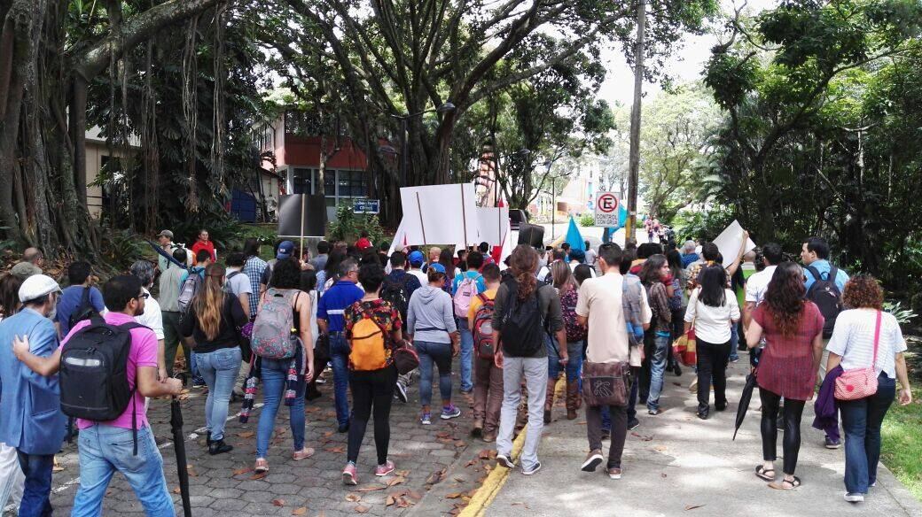 Por estos hechos, la Federación de Estudiantes de la UCR (Feucr) y el Sindicato de Empleados (Sindéu) se manifestaron en las afueras del Consejo Universitario. Unas 170 personas, entre estudiantes y funcionarios, asistieron a la marcha que salió a las 9 a. m. del pretil universitario.