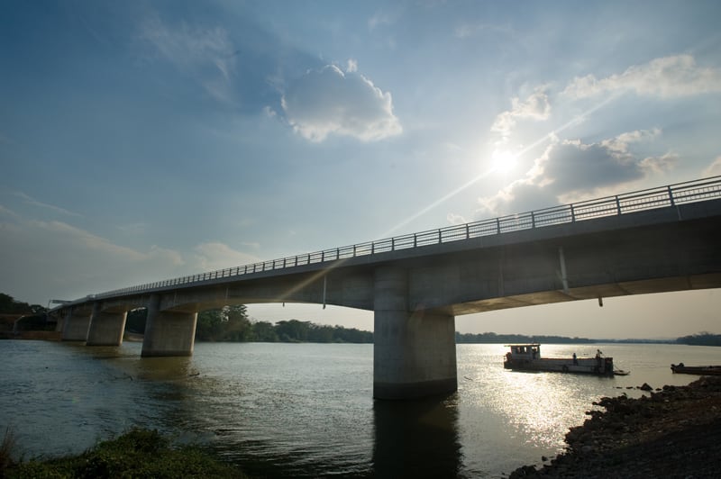 La obra, de 362 metros de largo, cruza el río San Juan en territorio nicaragüense y conecta el resto del país con la línea de la frontera costarricense, que está nueve kilómetros al sur.