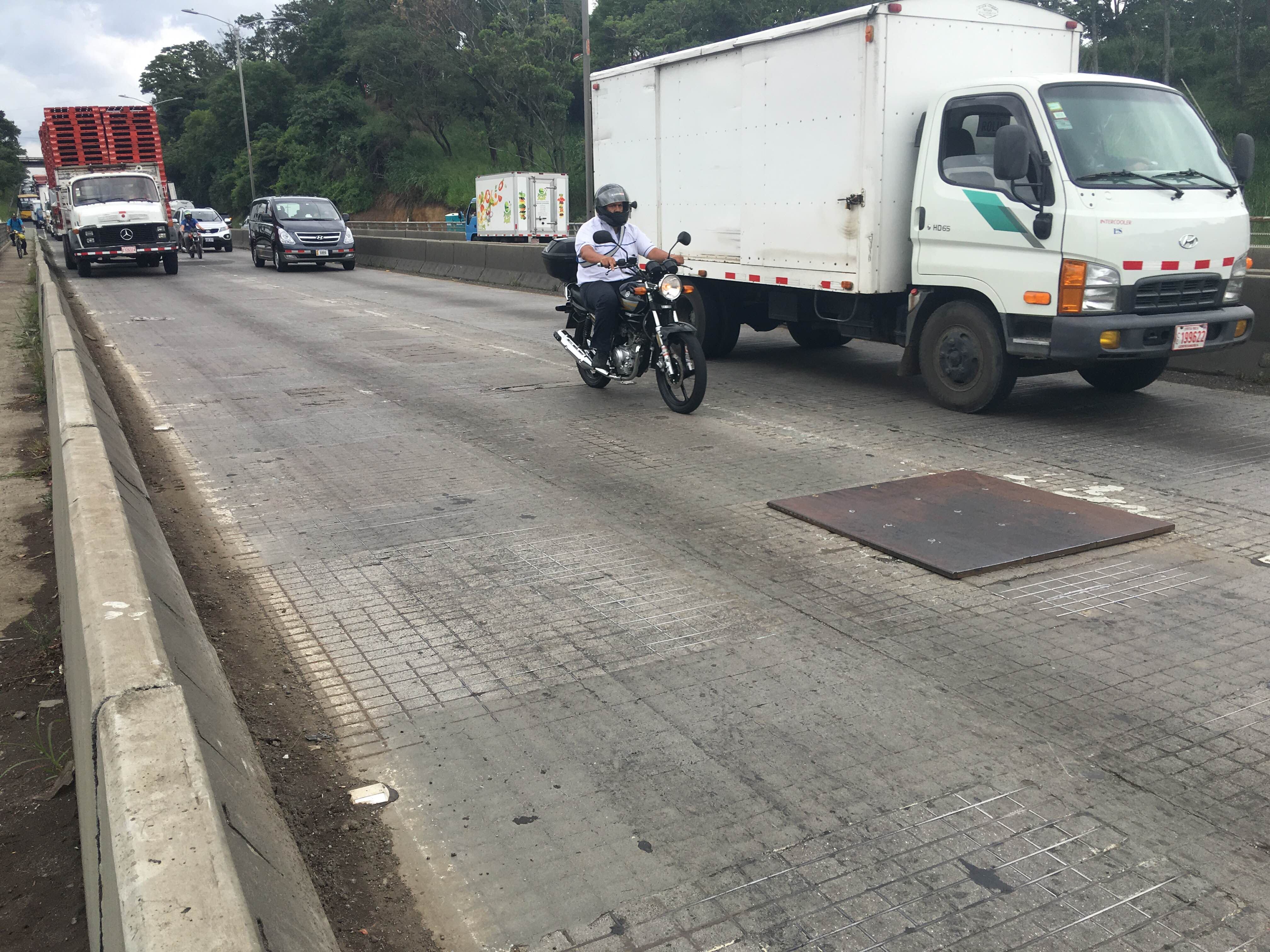 Dos huecos en las losas del puente sobre el río Virilla, en la autopista General Cañas, fueron reparados de manera provisional con láminas de metal, informó el Consejo Nacional de Vialidad (Conavi) este viernes.