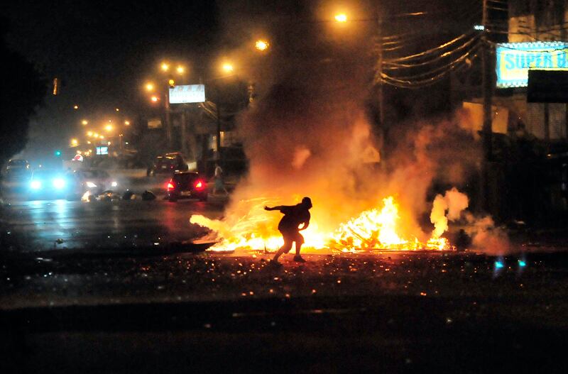 La madrugada de ayer se presentaron los disturbios más violentos, cuando revoltosos quemaron dos contenedores, obstaculizaron varias calles con llantas a las que prendieron fuego y lanzaron piedras, e hirieron a un policía.