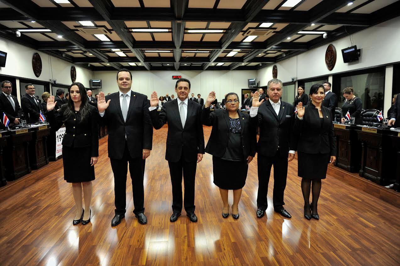 El nuevo Directorio: Natalia Díaz (ML), Gonzalo Ramírez (Renovación), Antonio Álvarez (PLN), Marta Arauz (PLN), José Alberto Alfaro (ML) y Paulina Ramírez (PLN). (Melissa Fernández)