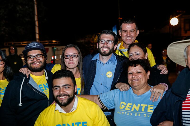 Marcel Soler (centro de anteojos) ganó ayer la alcaldía de Montes de Oca con la coalición Gente de Montes de Oca. | ADRIÁN SOTO (Adrian Soto)