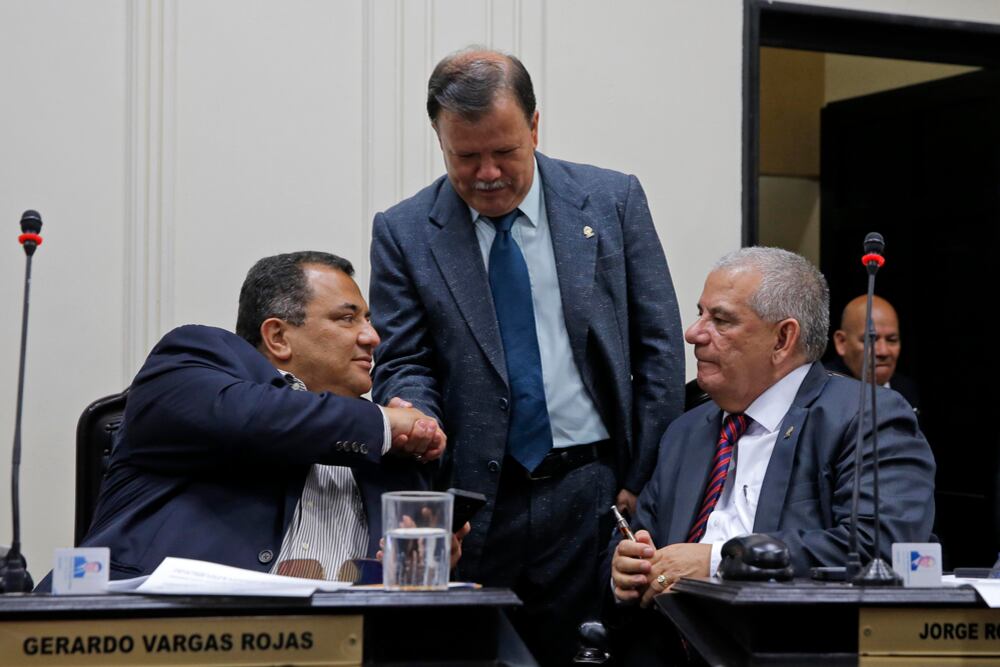 El diputado Abelino Esquivel (centro), de Renovación Costarricense, votó en contra del proyecto de ley sobre financiamiento del terrorismo. Humberto Vargas (izq.), del PUSC, se ausentó antes de la votación; Jorge Rodríguez (der), también del PUSC, sí votó a favor. | MAYELA LÓPEZ (Mayela López)