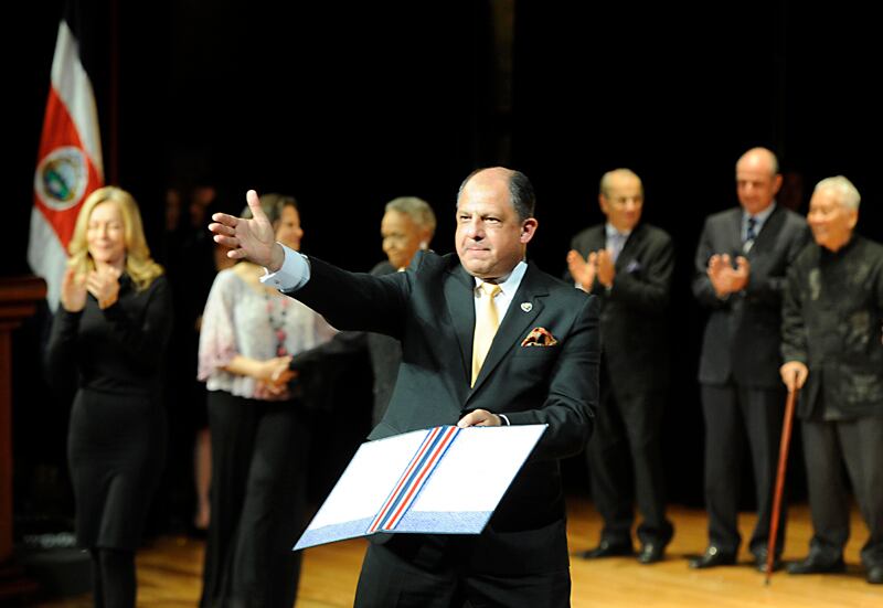 El presidente Solís muestra el decreto de reforma constitucional a invitados de diversas etnias que llegaron al Teatro Nacional. | GRACIELA SOLÍS (Jose_Diaz)