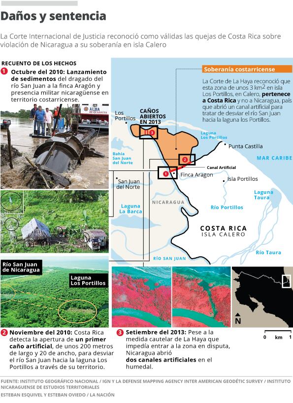 Hace un año, la Corte Internacional de Justicia, con sede en La Haya, declaró que Nicaragua invadió y dañó suelo costarricense entre el 2010 y el 2013, cuando abrió tres canales artificiales en el humedal de isla Portillos, ubicada en el extremo norte de isla Calero.