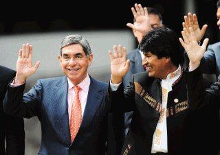 El presidente Óscar Arias posó junto al boliviano Evo Morales en San Salvador, para la “foto de familia”. | AFP (YURI CORTEZ)