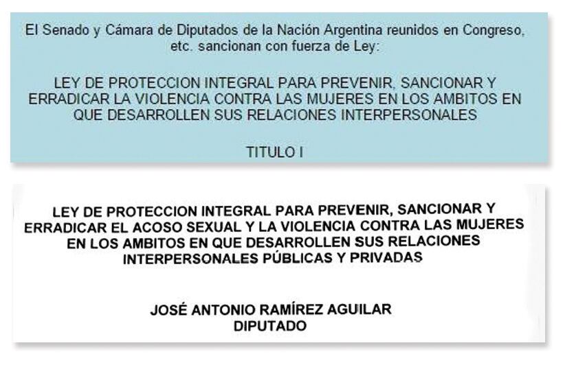 La legislación “madre” de la iniciativa frenteamplista es la ley 26.485, de idéntico título al de Ramírez y, además, con la mayoría de los artículos iguales.