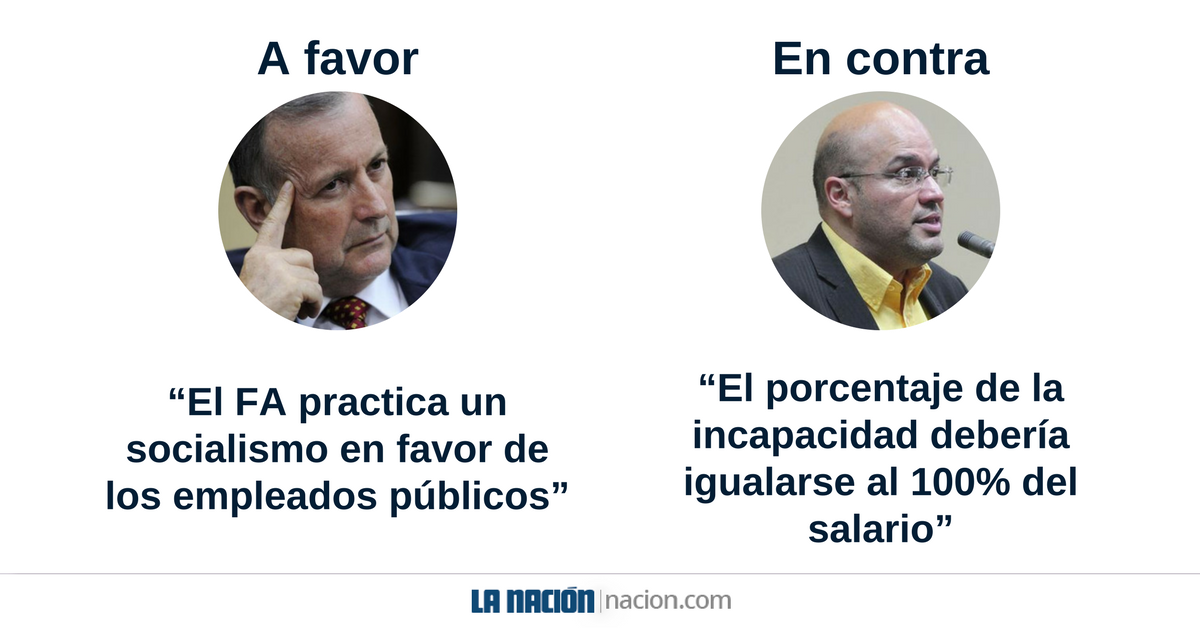 El jefe de esa bancada, Edgardo Araya, argumentó que, más bien, todos los empleados públicos y privados del país deberían de recibir un 100% del sueldo cuando se incapacitan por enfermedad, especialmente aquellos que apenas ganan el salario mínimo.