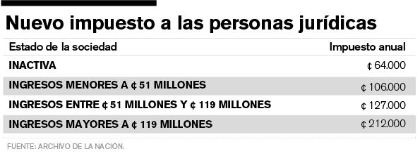 El impuesto a las personas jurídicas existió entre el 2012 y el 2015, pero la Sala IV lo declaró inconstitucional por errores en el proceso de aprobación en el Congreso. A la fecha, de esos periodos todavía hay 336.000 sociedades morosas.