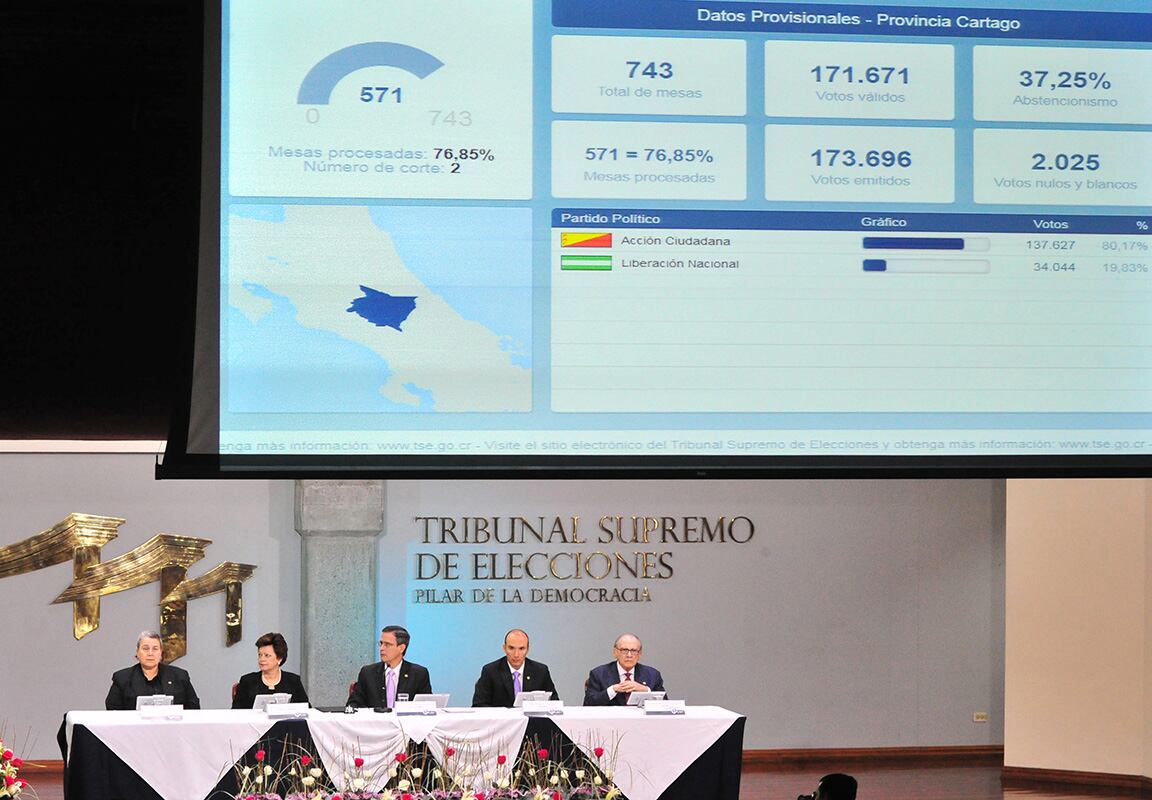 Al ser las 9:00 p. m. el Tribunal Supremo de Elecciones (TSE) anunció el tercer corte con un 94% de las mesas escrutadas y según esos resultados, Solís obtuvo el 77,88 % de apoyo mientras que el candidato Johnny Araya del Partido Liberación Nacional recibió el 22,12 % de respaldo.