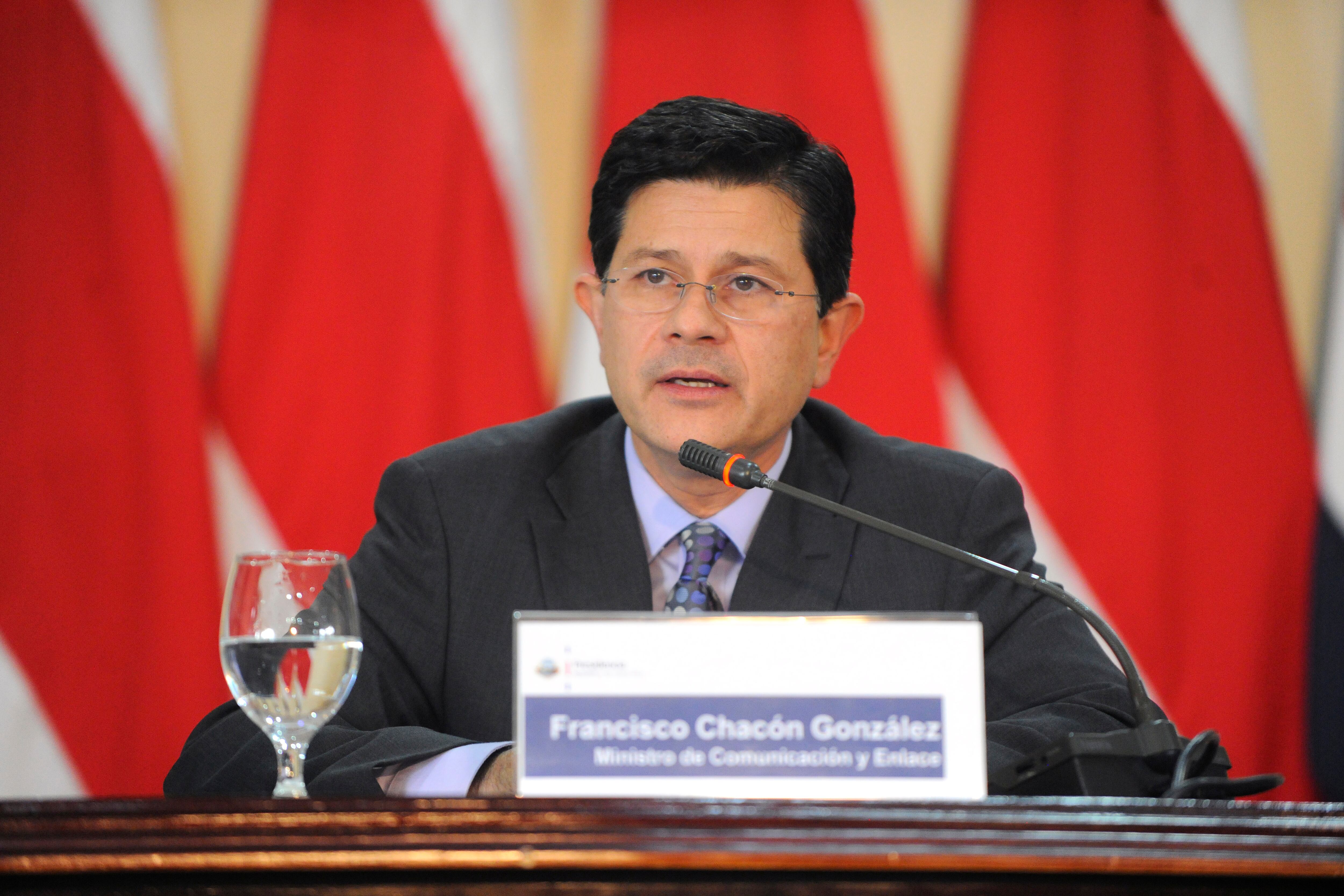 Chacón se desempeñó como diputado durante el gobierno de Laura Chinchilla del 2010 al 2012 y, luego, pasó al ministerio de Comunicación, cargo que ejerció hasta mayo del 2013. Dejó ese puesto tras el escándalo que envolvió a Chinchilla por viajar en una aeronave prestada por el empresario colombiano Gabriel Morales, quien había afrontado cuestionamientos en su país por la presunta relación suya y de sus empresas petroleras con un supuesto narcotraficante.