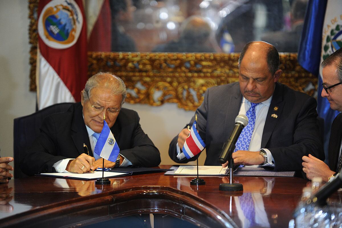 Acuerdo de cooperación. Durante la cita de este miércoles, los gobiernos de Costa Rica y El Salvador firmaron un acuerdo de cooperación que Luis Guillermo Solís calificó como único en la región centroamericana.