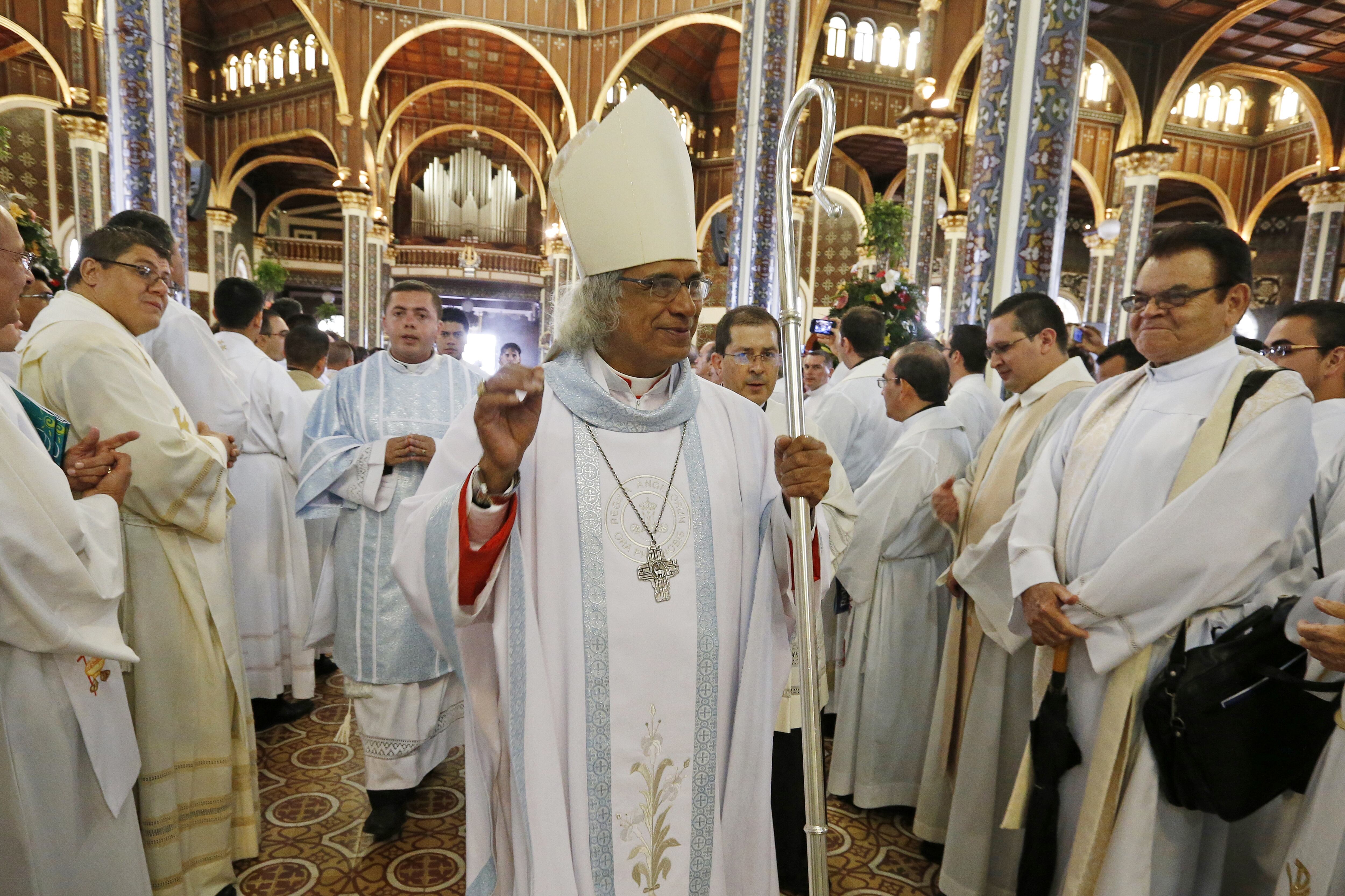 El cardenal de Nicaragua, Leopoldo Brenes, solicitó la apertura de las fronteras de la región para permitir el paso de los migrantes cubanos. Aquí, durante una visita a Costa Rica con ocasión de la celebración del 2 de agosto del 2014. (Mayela López)