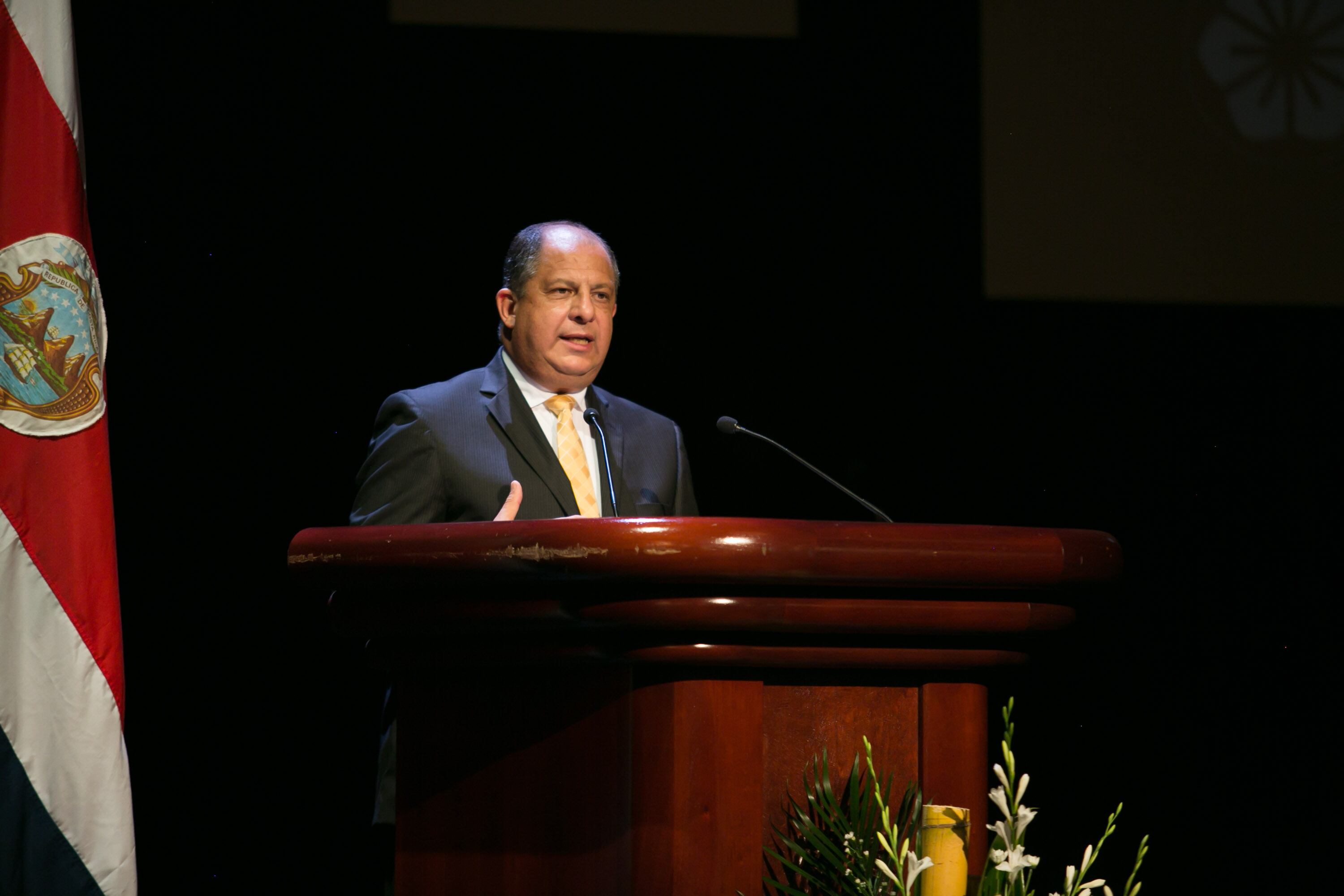 El presidente de la República, Luis Guillermo Solís, en la entrega de los Premios Nacionales de Cultura. (Presidencia)