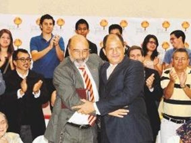 Alberto Salom (gris) saluda al precandidato Solís. | ABELARDO FONSECA