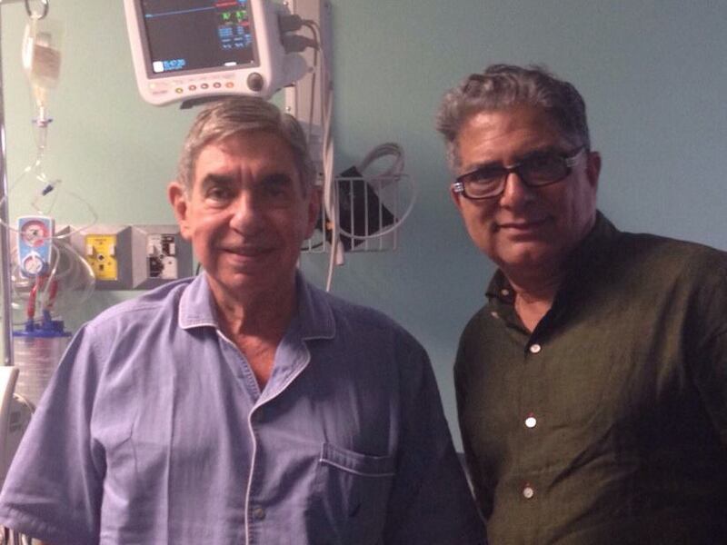 “Habíamos quedado de almorzar juntos en mi casa. El almuerzo lo tuve que cancelar debido a mi intervención quirúrgica. Deepak, sin embargo, me sorprendió con su visita inesperada al hospital. Y como suele suceder siempre que nos vemos, hablamos de lo humano y lo divino”, escribió en su Facebook.