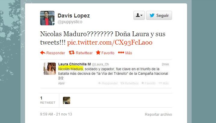 Presidenta Laura Chinchilla confundió a nuevo héroe nacional con Nicolás Maduro en discurso