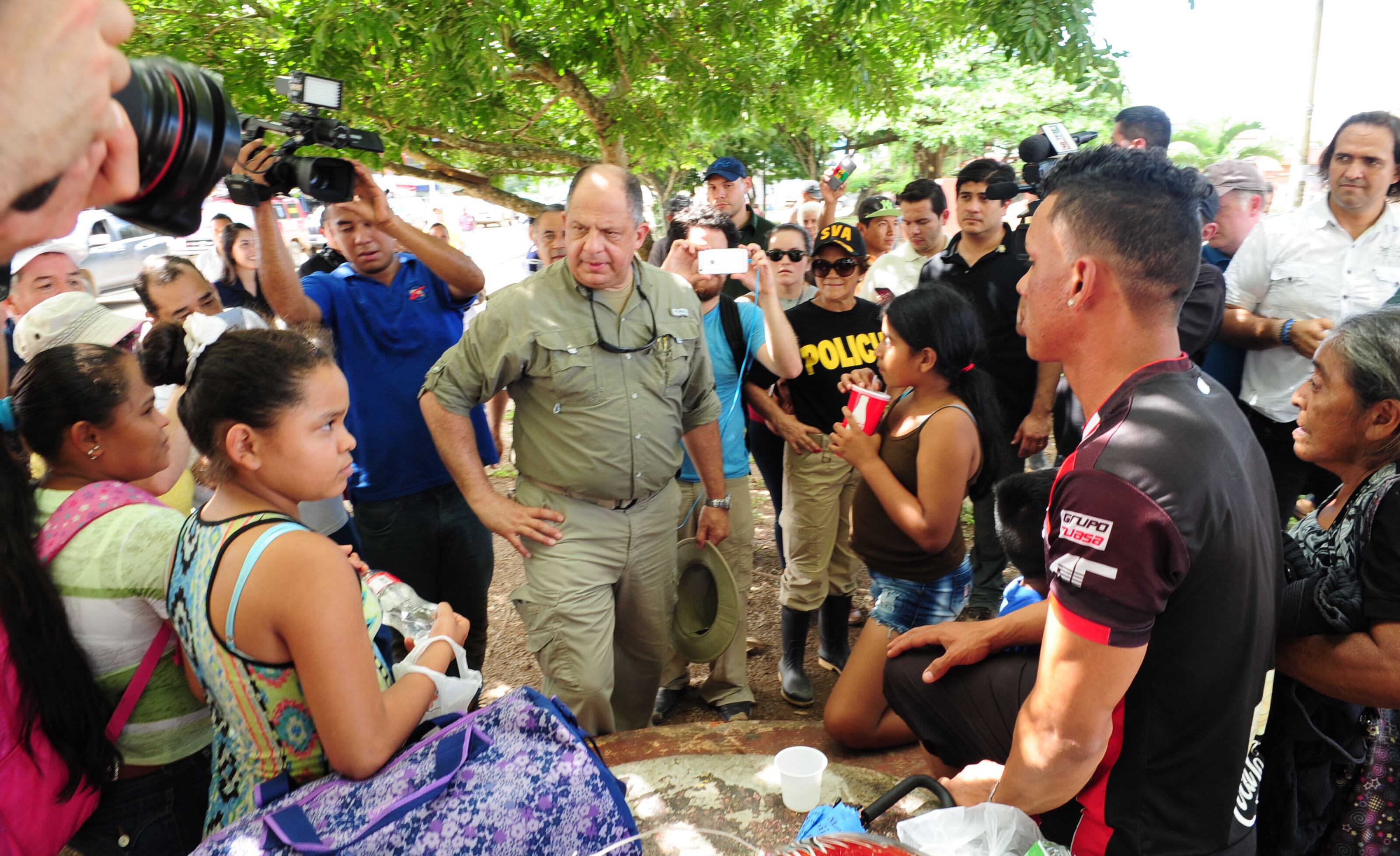 El mandatario destacó la labor de la Comisión Nacional de Emergencias, y de la labor de coordinación de la vicepresidenta de la República, Ana Helena Chacón, quien desde la semana anterior ha estado coordinando directamente la atención humanitaria de la emergencia en este cantón alajuelense.