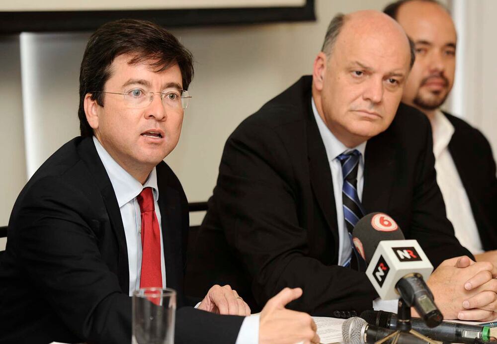 El presidente del PUSC, Pedro Muñoz (corbata roja) y el secretario general de la agrupación, Rodolfo Piza (corbata a rayas) chocan por el recorte a las pensiones de lujo. | LUIS NAVARRO (Luis Navarro)