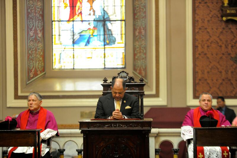 En esa actividad, Solís se unió a la celebración de la Iglesia católica, para rememorar los primeros dos años del pontificado de Francisco.