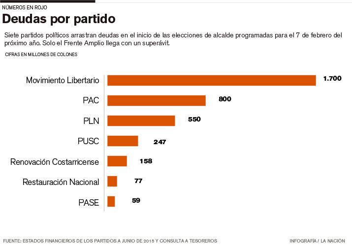 Los partidos Liberación Nacional (PLN), Acción Ciudadana (PAC) y el Movimiento Libertario llegan con deudas de más de $1 millón (¢540 millones) a la elección de alcaldes de febrero del próximo año.