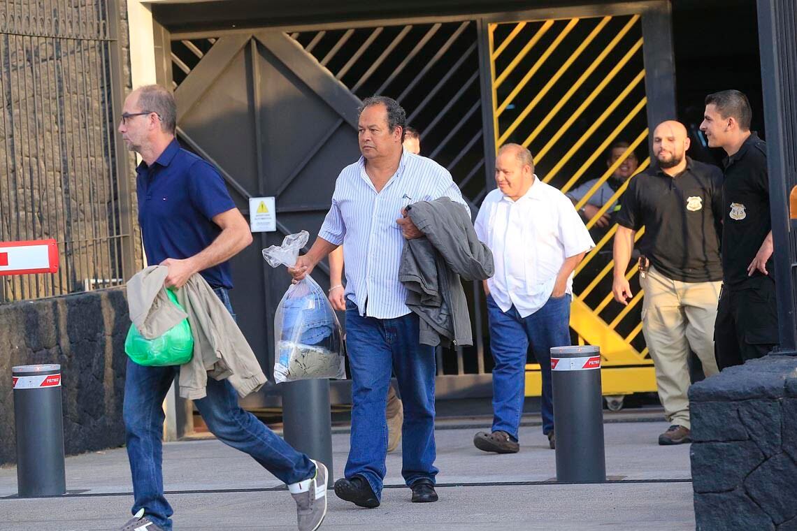 Alfredo Rojas (izq), gerente financiero de Infocoop, Milton Siles (centro) presidente de Coodepas y Freddy González (último) secretario ejecutivo de Conacoop, quedaron libres este jueves a las 5 p.m. Permanecían en los Tribunales de Goicoechea. (Rafael Pacheco)