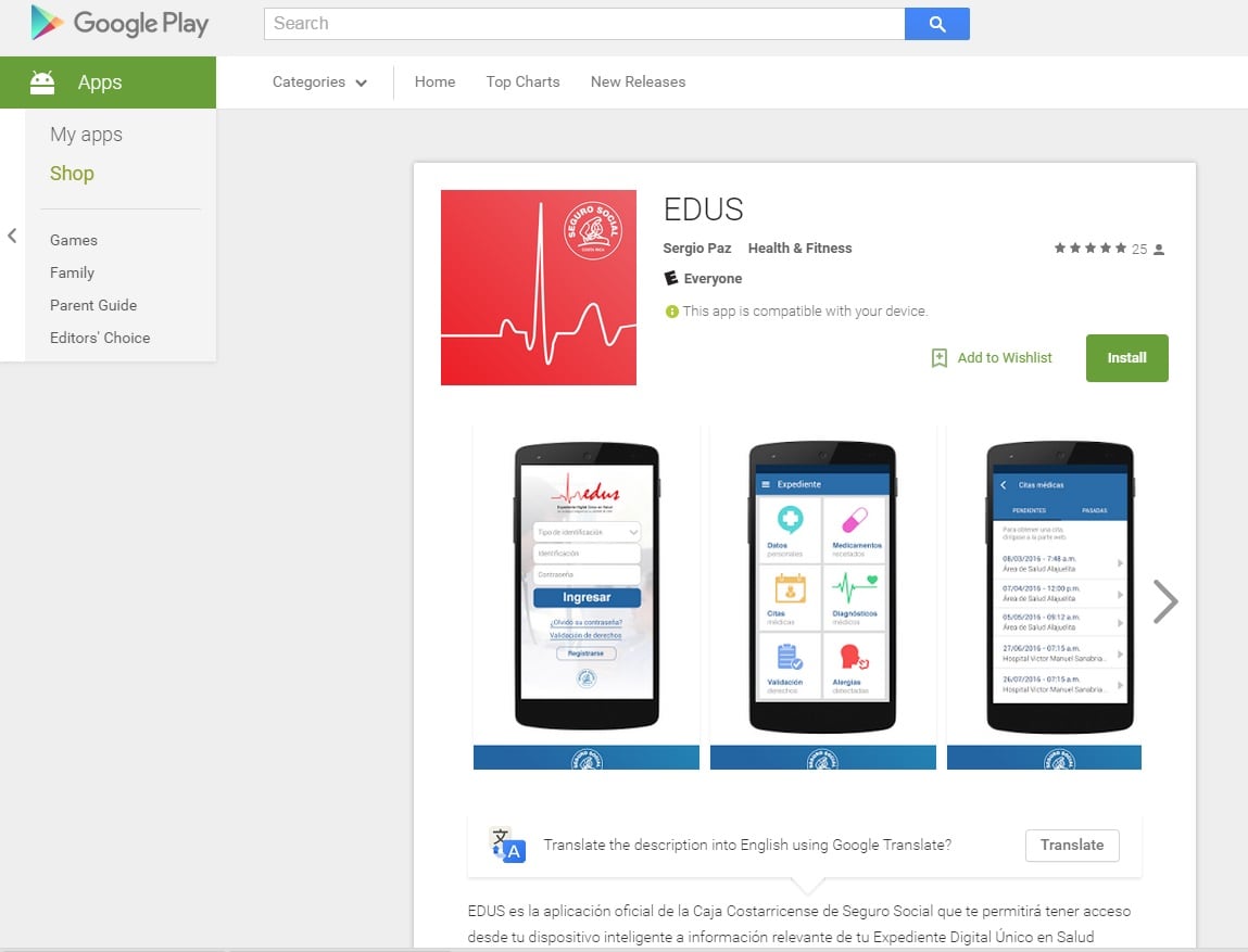 La Caja Costarricense de Seguro Social (CCSS) lanzó una aplicación para dispositivos móviles en la cual los usuarios podrán tener acceso a su Expediente Digital Único en Salud (EDUS).