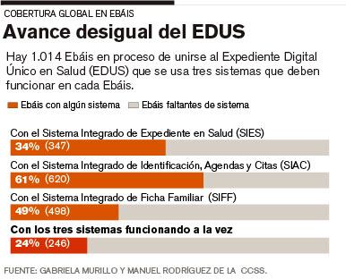 El EDUS se centra en un primer nivel de atención de la CCSS que son los Ebáis y áreas de salud. Solo en este se invierten $32 millones en obras de conexión e infraestructura de los centros.