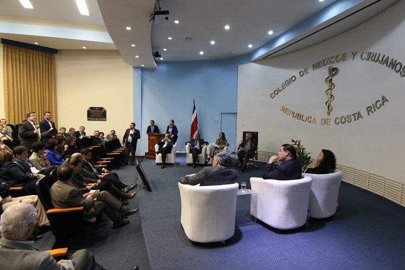 A la actividad asistieron decenas de profesionales en Ciencias de la Salud, encabezadas por las autoridades del ramo, María del Rocío Sáenz Madrigal, presidenta ejecutiva de la Caja, y Fernando Llorca, ministro de Salud.