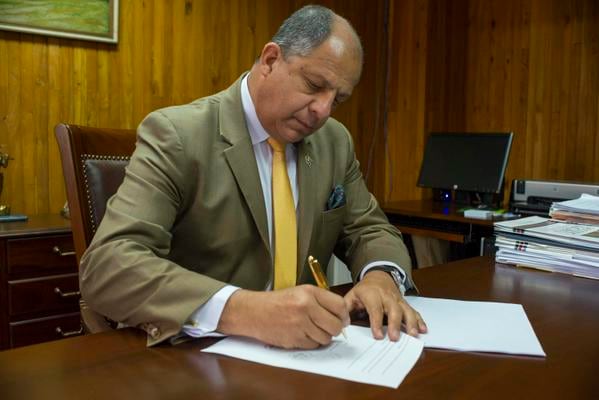 El presidente de la República, Luis Guillermo Solís, firmó la tarde de este jueves el decreto que permite regular la fertilización in vitro en el país. (Tomada de Twitter)