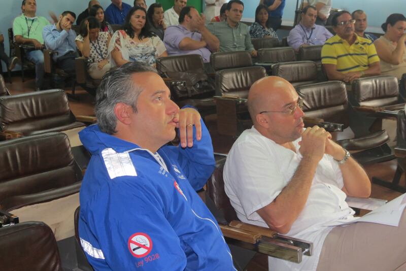 El Ministro de Salud, Fernando Llorca (der.), escuchó a los médicos del Hospital San Carlos. Los funcionarios pidieron suspender actividades masivas ante el riesgo de que más personas se contagien. En la foto, aparece junto al diputado de la zona, Edgardo Araya. | CARLOS HERNÁNDEZ PARA