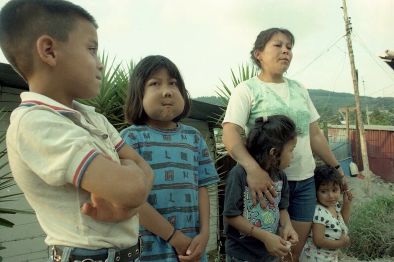 Esta imagen es de 1998. Mayron Reyes (de camiseta azul) nació con una enfermedad inexplicable: los huesos de sus pómulos crecían mientras su boca se reducía. Su padre trabajó en las bananeras por 14 años. | ARCHIVO