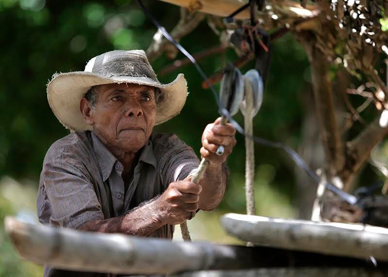 Teodoro Víctor Duarte, de 66 años, utiliza un pozo de 12 metros de profundidad para sacar el agua para 40 reses en una finca en Lajas de Huacas, en Guanacaste. (Albert Marín.)