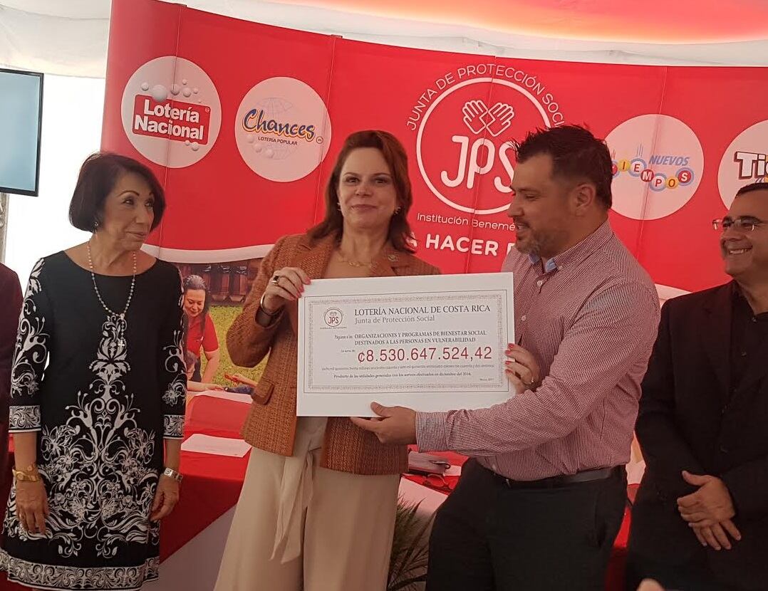 Autoridades de la Junta de Protección Social (JPS) entregaron este miércoles más de ¢8.530 millones a representantes de organizaciones sociales, dinero correspondiente a las utilidades generadas por el Gordo navideño y los dos sorteos de consolación jugados en diciembre del año pasado.