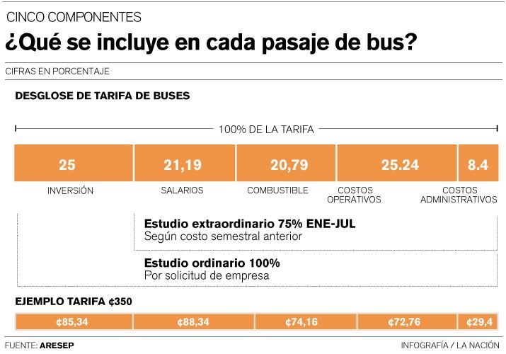 La fórmula que se utiliza para la fijación de tarifas de autobús nunca ha sido publicada de forma oficial; para establecerlas, la Aresep se basa en el modelo que adoptó el MOPT en 1996.