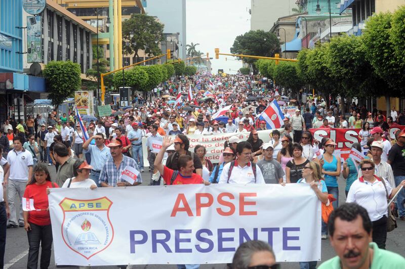 La primera manifestación fue el 27 de julio y la organizaron los sindicatos del Instituto Costarricense de Electricidad (ICE) y la Asociación Nacional de Empleados Públicos y Privados (ANEP).