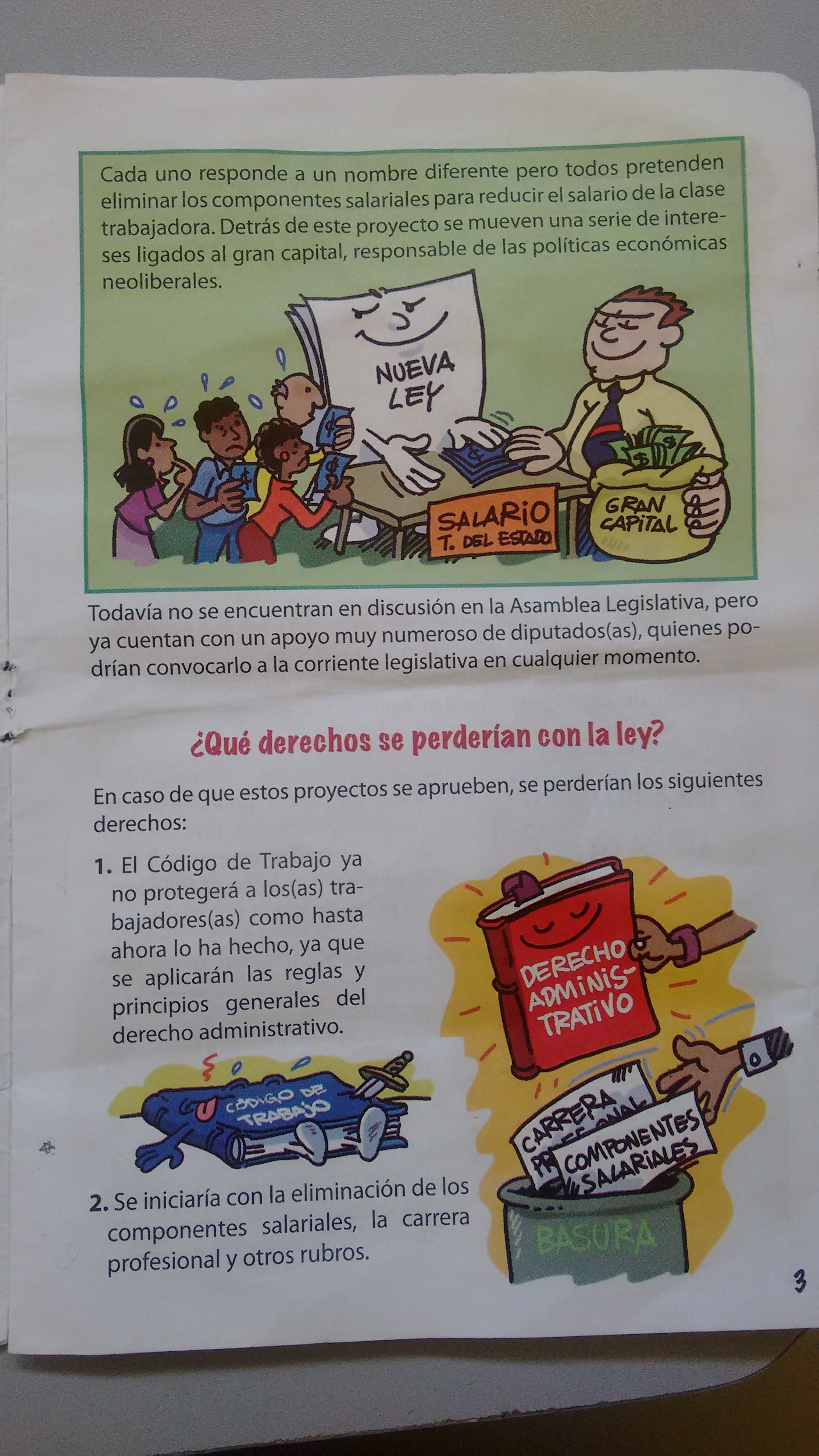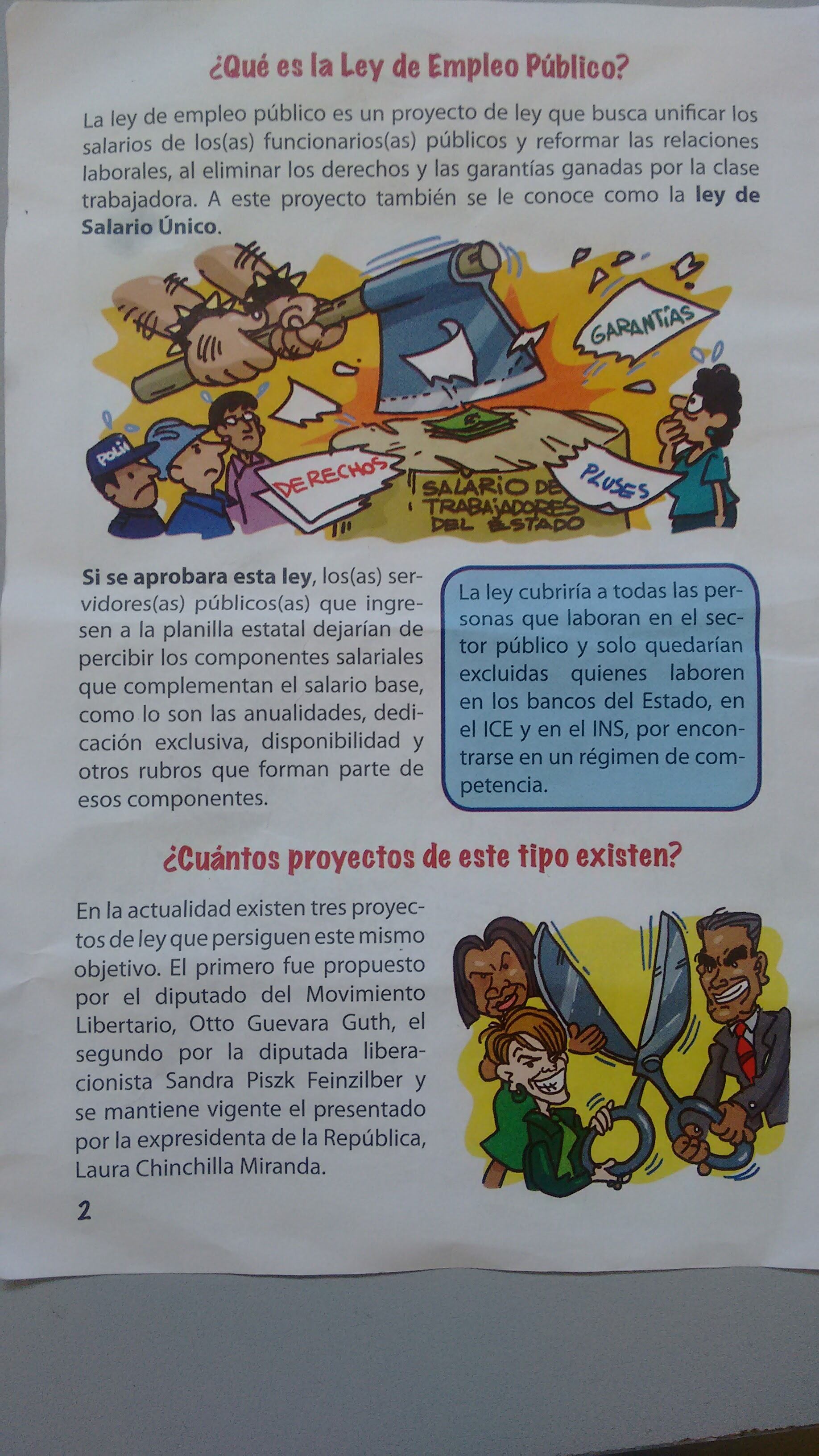 La Nación obtuvo una copia de la publicación en una asamblea gremial en Cartago, y comparó las afirmaciones que contiene con tres iniciativas de reforma al empleo público que se conocen actualmente en la Asamblea Legislativa.