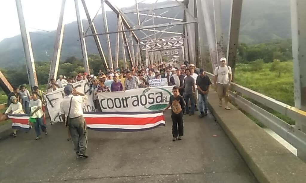 Más de 90 familias campesinas tienen bloqueado un puente sobre el Río Térraba, en la Interamericana sur, desde las 4:00 de la mañana de hoy martes en reclamo por unas tierras en Palmar Sur que demandan que le sean traspasadas.