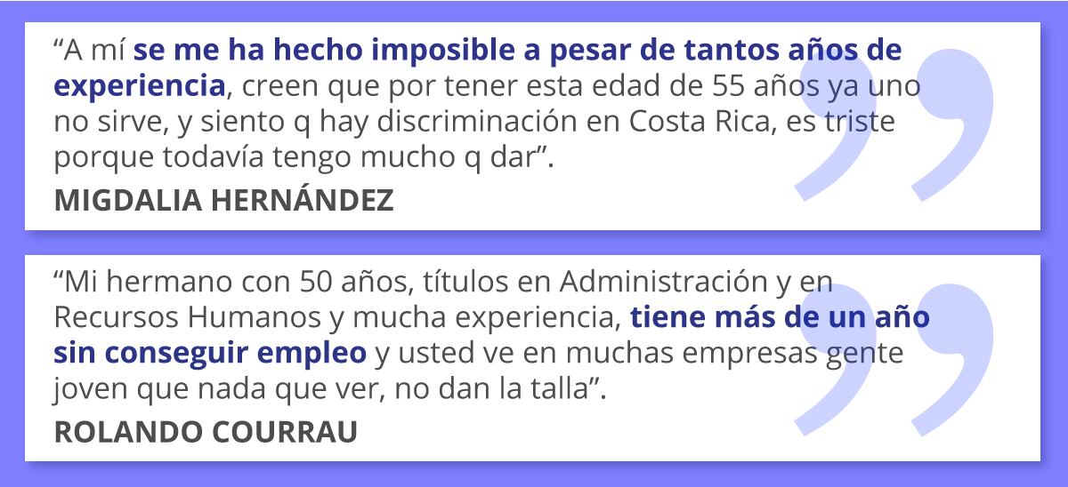 La discriminación por motivos de edad alegada por quienes no encuentran trabajo está prohibida por el Código de Trabajo. La Reforma Procesal Laboral incluso establece sanciones cuando se demuestre que un patrono incurrió en distinciones injustas en procesos de reclutamiento.